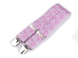 A gyermek nadrágtartó hossza 60 cm, szélessége 2,5 cm. A minta jó minőségű, nem kopik le. A nadrágtartó 100% poliészterből készült. Jó minőségű cseh termék, fém kapcsokkal fogatható a nadrágra.